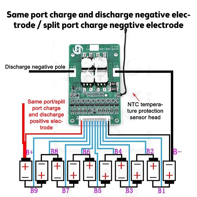 10S (36V)42V BMS modul za zaščito litijeve baterije z vgrajenim nadzorom temperature ter z funkcijo izravnave.